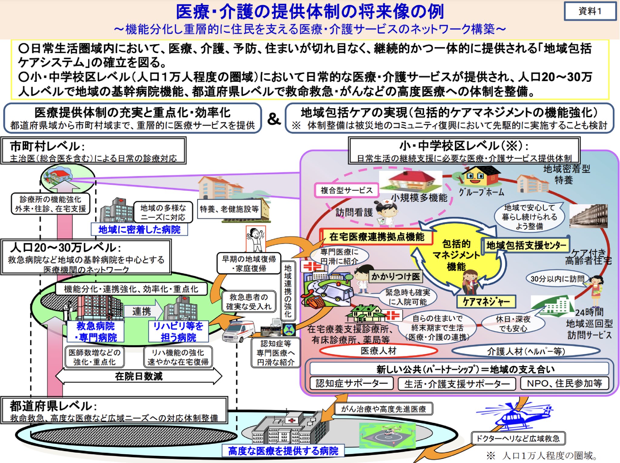 この資料は、医療・介護の提供体制の将来像について説明したものです。