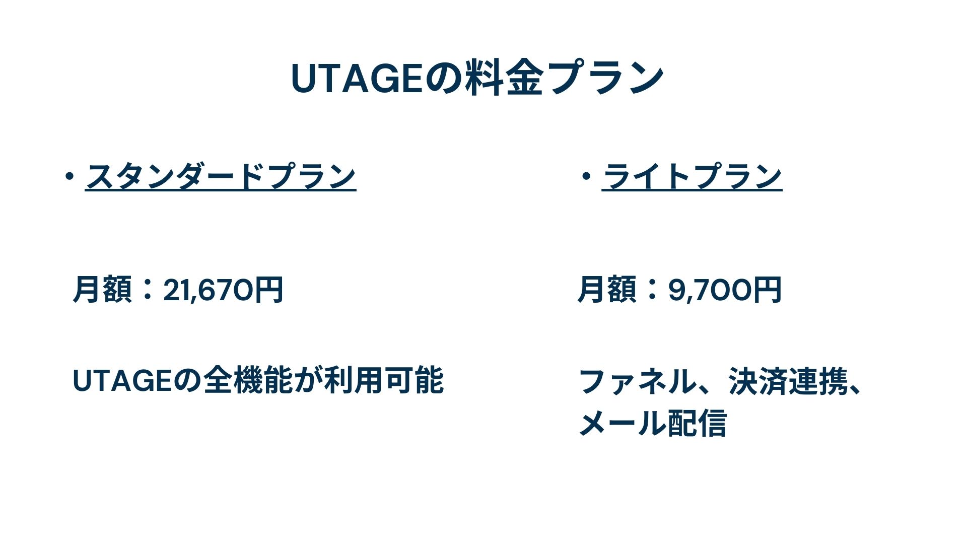 A. 14日間の無料トライアル期間があります。トライアル期間中は、UTAGEのすべての機能をお試しいただけます。