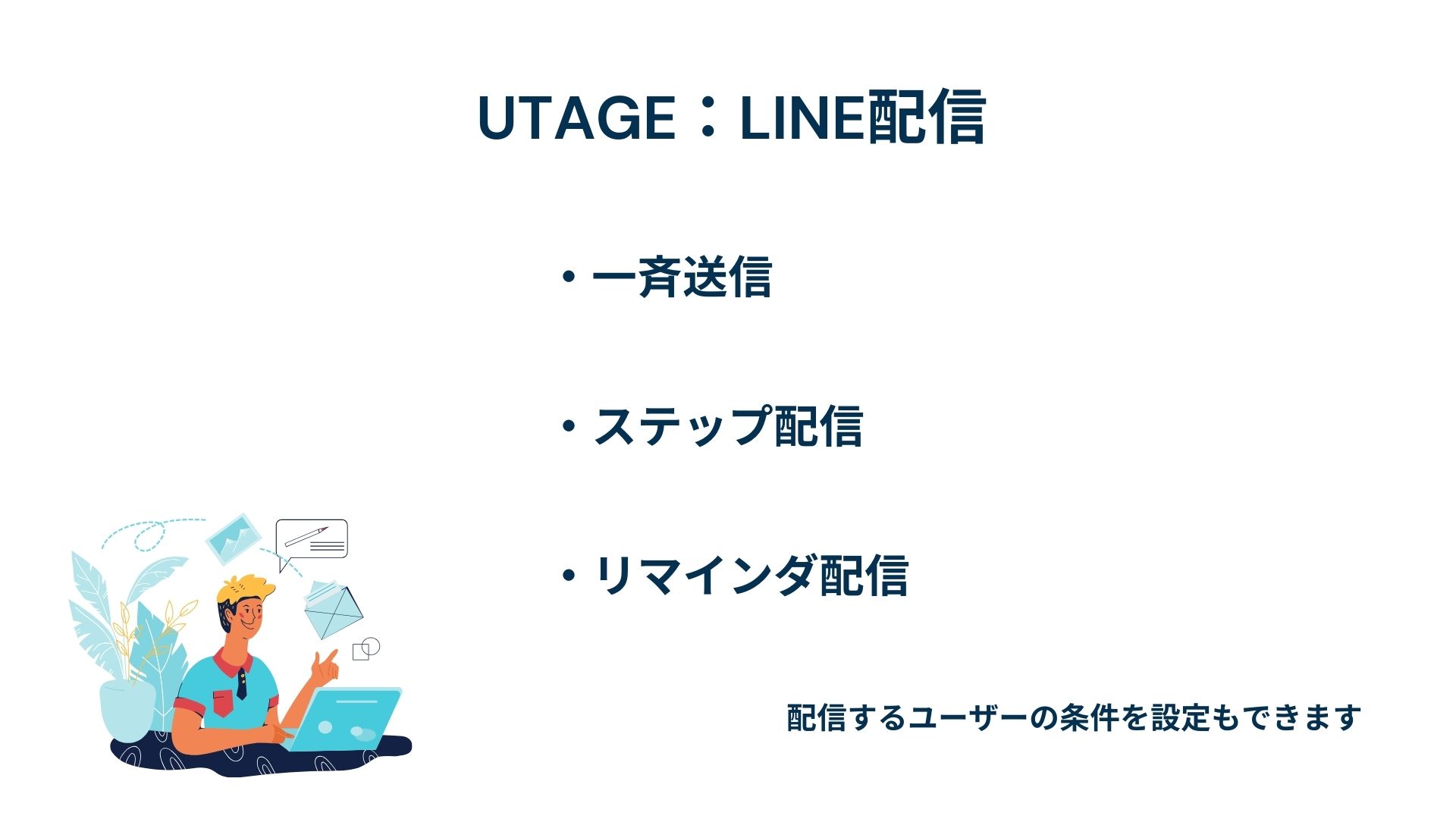 LINE公式アカウントと連携することで、以下の配信方法が選択できます:
