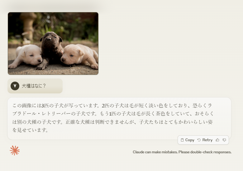 特に正確性と倫理性については、Anthropic社が「構成的AI」という独自の学習手法を用いており、他のAIよりも優れていると評価されています。また、画像認識機能も搭載しているため、画像を読み込ませることで、その内容について質問したり分析を行ったりすることができます。