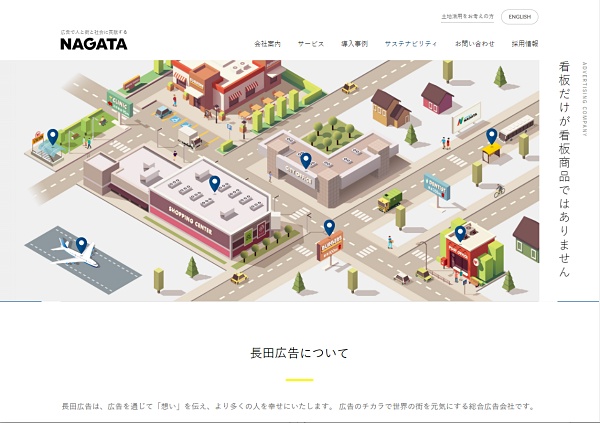 長田広告株式会社は、屋外広告や交通広告のほか、新聞、テレビ、映画広告を行っている広告代理店です。