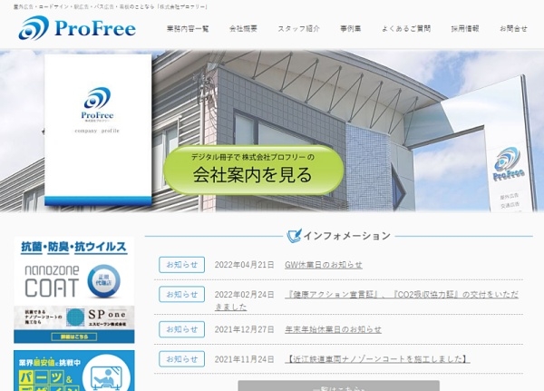 株式会社プロフリーは、交通広告、屋外広告、テレビ、映画CMなどの従来の広告に加え、ホームページ作成や、動画作成、公式LINEアカウントの手続きなど、幅広いジャンルに対応している総合広告代理店です。