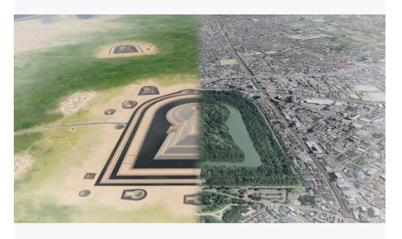 - ドローン撮影の実写映像によるリアルな百舌鳥古墳群の全貌