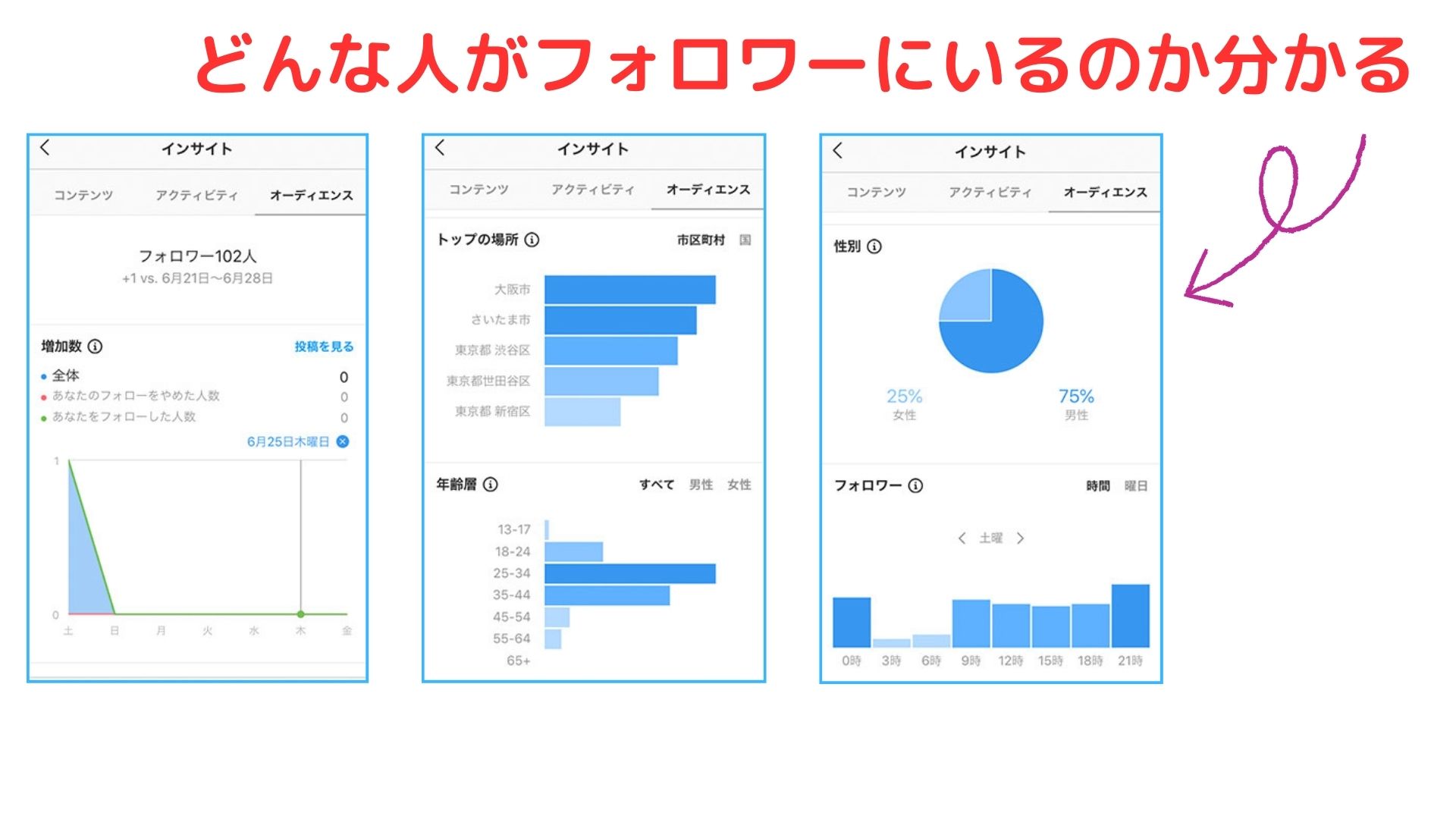 品質の高いコンテンツとフォローされるまでの導線を丁寧につくり集客を進める中で、インスタグラムアカウントのフォロワー属性も定期的に確認が必要です。