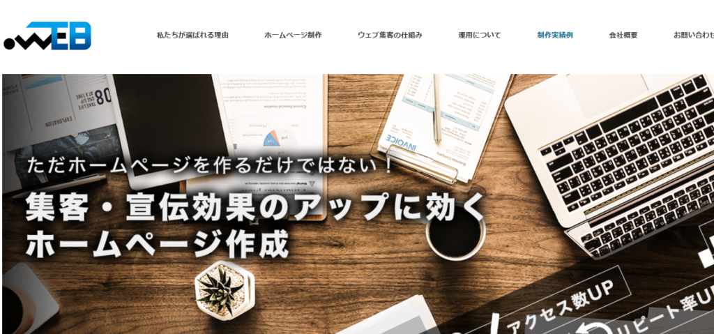 ホームページ作成以外にも、動画、写真撮影、DTPの印刷物の制作も行います。イベント企画や運営なども同時に注文できるため、PRサイト、イベントサイトの仕事も受注できます。また、SEO対策、リスティング広告まで含めた提案をしてくれるので、集客を重要視する方に適しています。