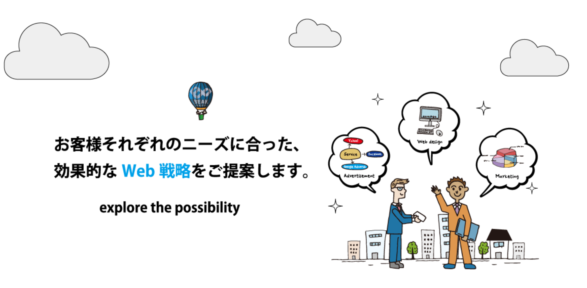 集客力を高めるためのホームページ制作や、新規顧客獲得のための分析を行い、最適な集客力アップへと繋げるための提案ができることが強みのひとつ。上位表示成功率80%以上という実績を持ち、ありとあらゆるジャンルに対応している点が特徴です。