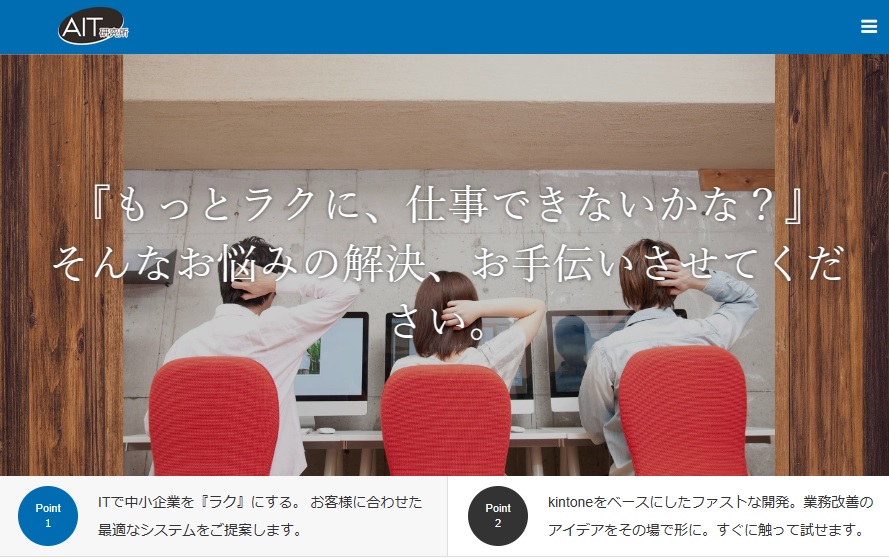 有限会社エーアイティ研究所は「経営者・社員のみなさんを少しでもラクにしたい」をモットーに中小企業のIT化促進を支援しています。