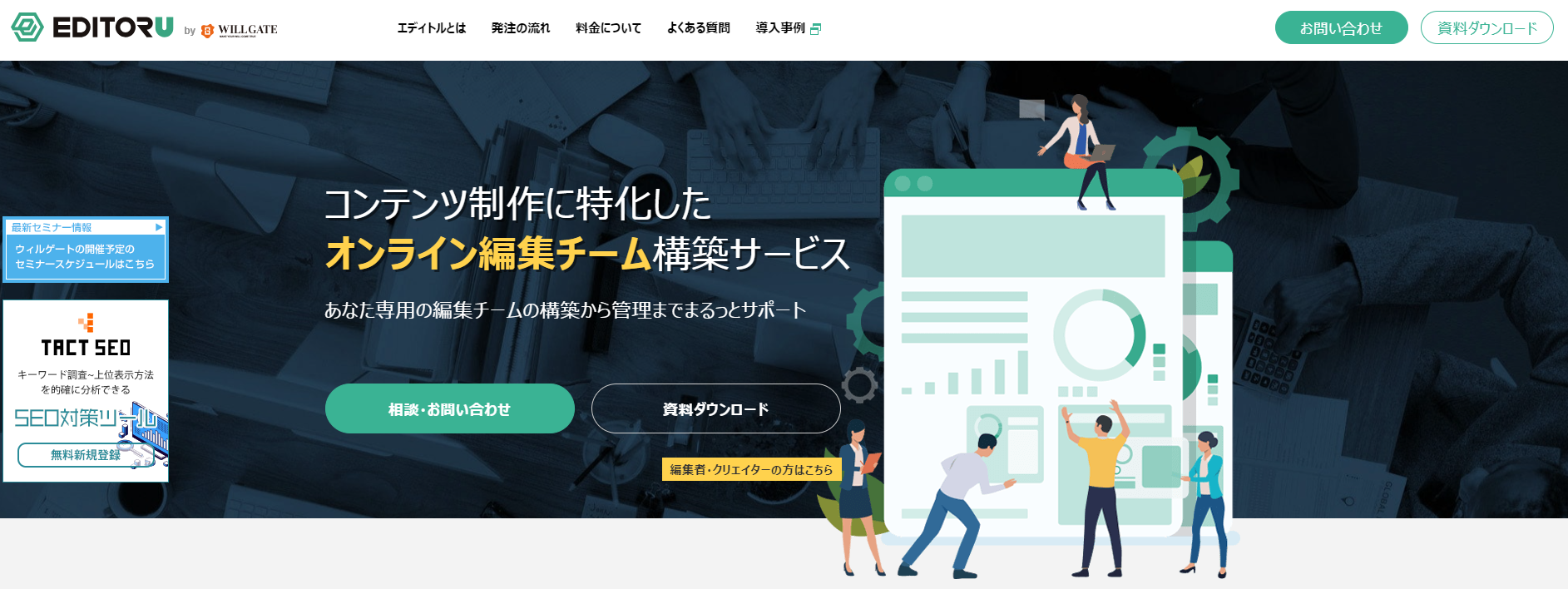 エディトルはサグーワークスと同じく株式会社ウィルゲートが運営するサービスです。