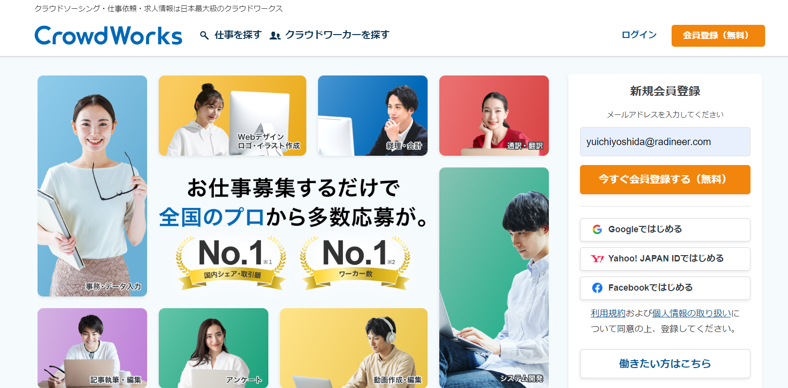 2011年創業のクラウドワークスは、株式会社クラウドワークスが運営する日本国内最大級のクラウドソーシングサービスです。