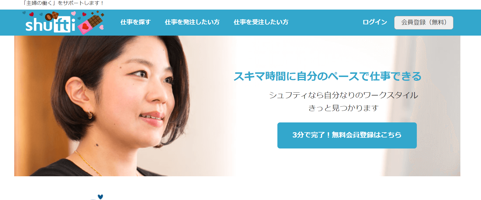 「シュフティ」は株式会社うるるが運営しており、ライティングや事務作業、データ入力業務など、比較的簡単な仕事が流通するクラウドソーシングサービスです。