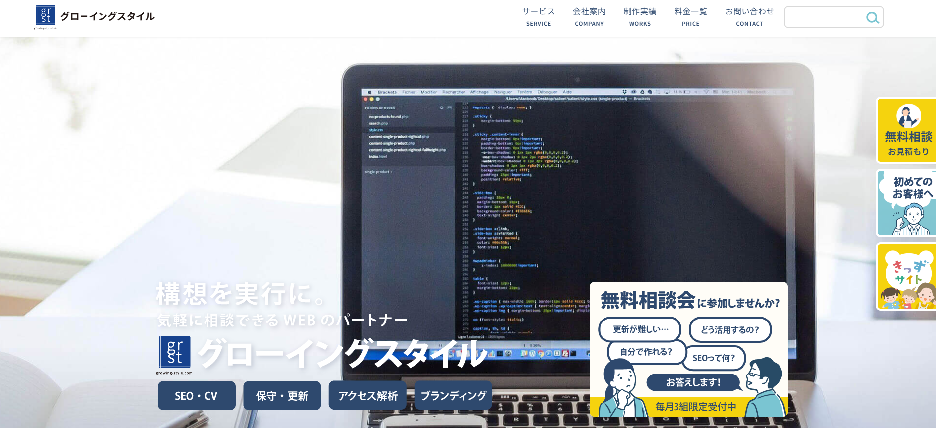 また、SEO対策はもちろん、ホームページの更新、サイト作成などに対しての無料相談もおこなっておりますので、WEBサイトの悩みがある方は無料相談してみてはいかがでしょうか。