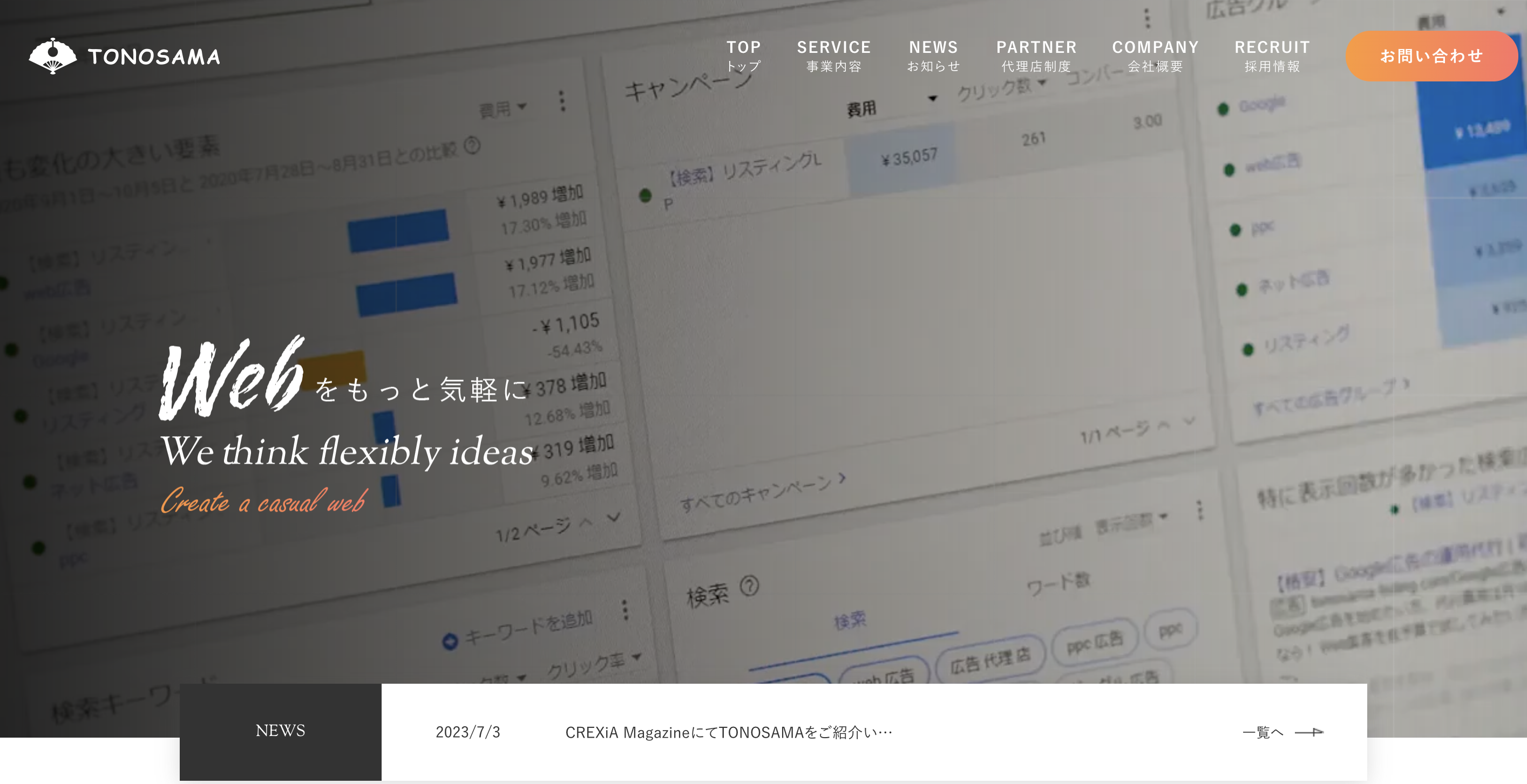 株式会社TONOSAMAについて 「格安SEO」や「格安リスティング広告」など、様々なキーワードで上位ヒットする株式会社TONOSAMA。 5年連続で、「格安SEO」1位の実績を持ち、これまでのノウハウを活かし最新のGoogleガイドラインに沿った内部対策と良質な外部リンクで徹底サポートをしています。 おすすめの理由として、