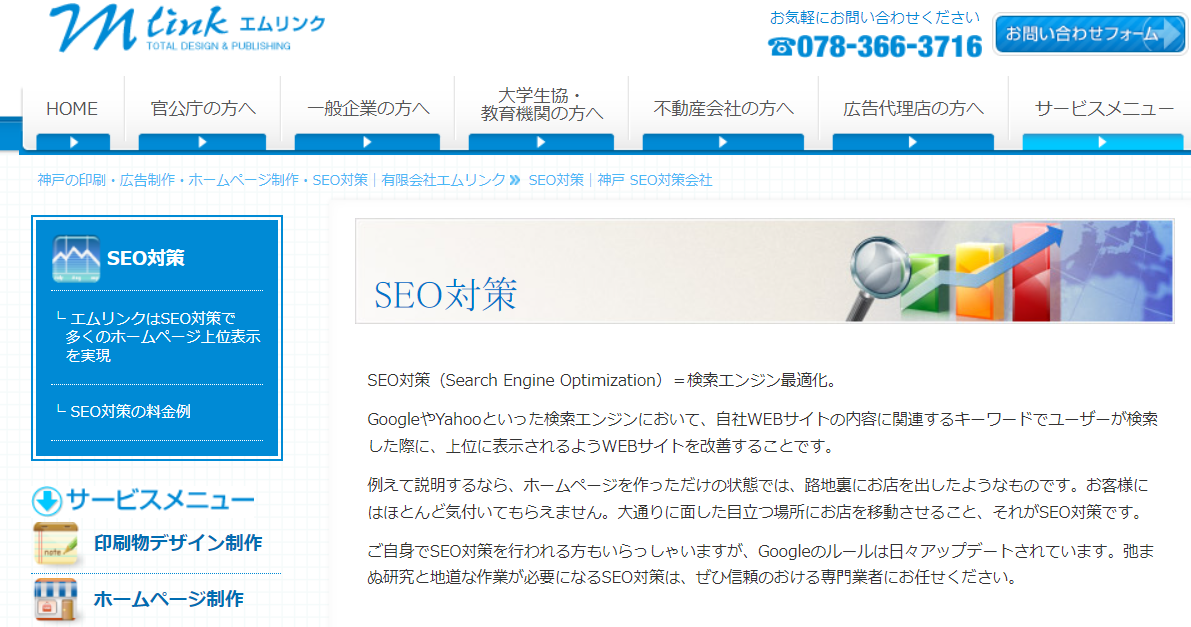 有限会社エムリンクは神戸元町にある地域密着型の制作会社です。広告作成に23年の歴史があり、印刷やホームページ作成、SEO対策にも対応しています。
