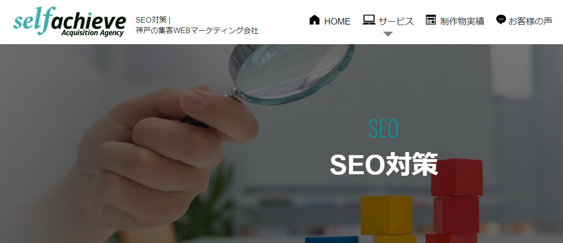 株式会社セルフアチーブは効果の高いSEO対策と実績があるSEO会社です。自社サイトが「SEO 神戸」「SEO対策 神戸」「神戸 SEO対策」「神戸 SEO」などのキーワードで検索結果1位を実現しており、安心して利用できます。