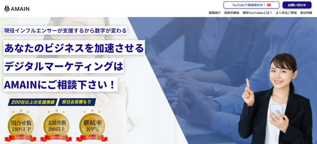 AMAINでは、現役インフルエンサーが企画から画像制作までSNS運用をサポートするので、数字としての効果が期待できます。また、動画マーケティングでは現役YouTuberや現役TikTokerと連携して手厚くサポートします。